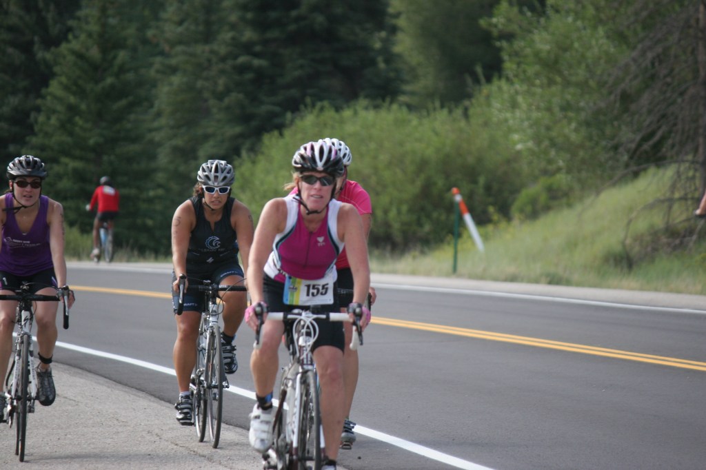 As the gun went off, my age group began the race. I was kicked, punched and the water was cooooold! Of course it was, we were in the Rockies at 9,000ft and were swimming in a lake with runoff. I lost my breath, I was thrashed around, worse than any mosh-pit I’ve ever been in. I made it through the swim, I exited the water and there was only one word exiting my mouth, repeatedly. I’ll give you a hint, it begins with ‘F’ and rhymes with ‘muck.’